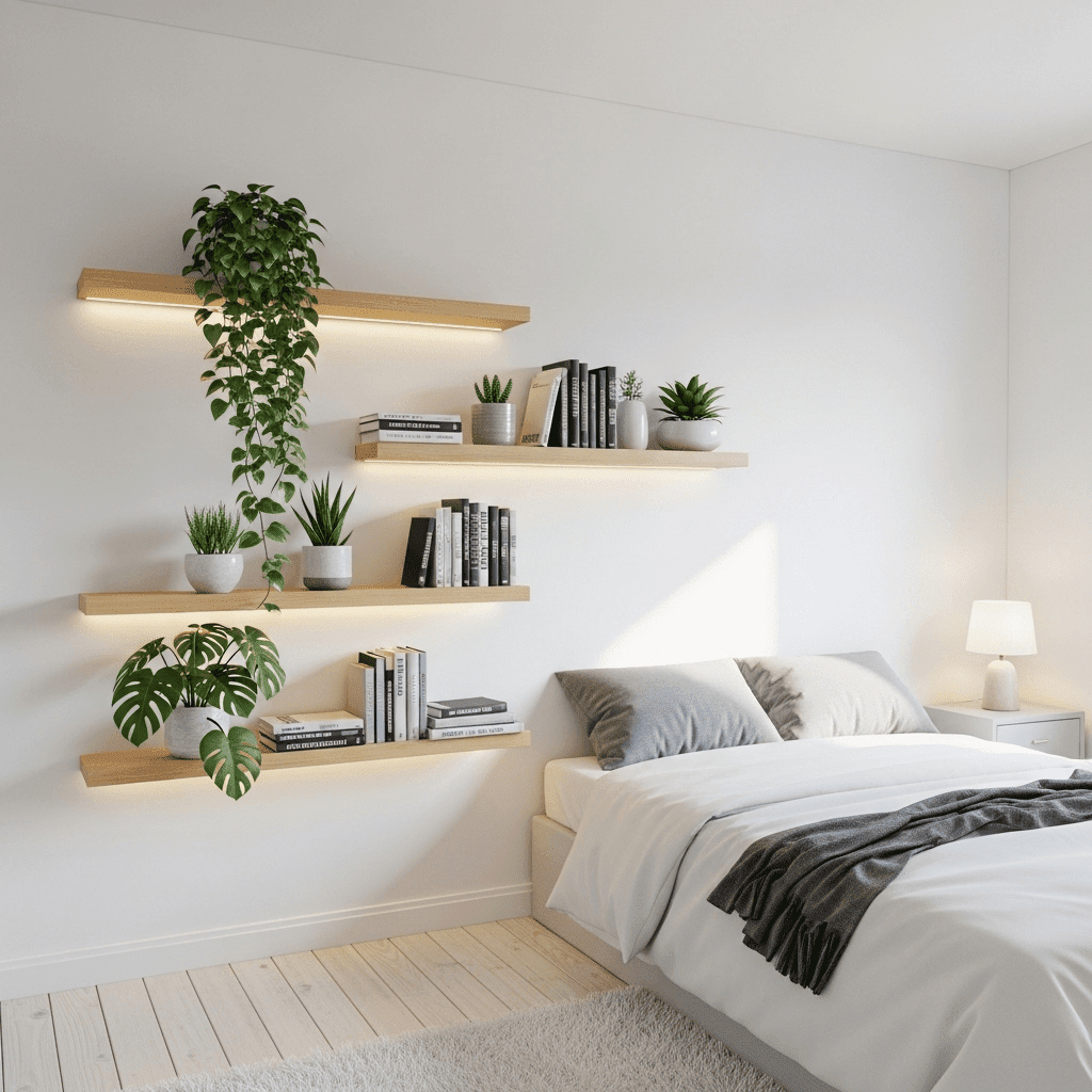 Cute bedroom ideas for small rooms bloxburg emphasize the use of “Wall Shelves” stacked with “Potted Plants.” Using the “Transform Tool” to place plants at slightly different angles creates a lush, organic feel that brings the small room to life.