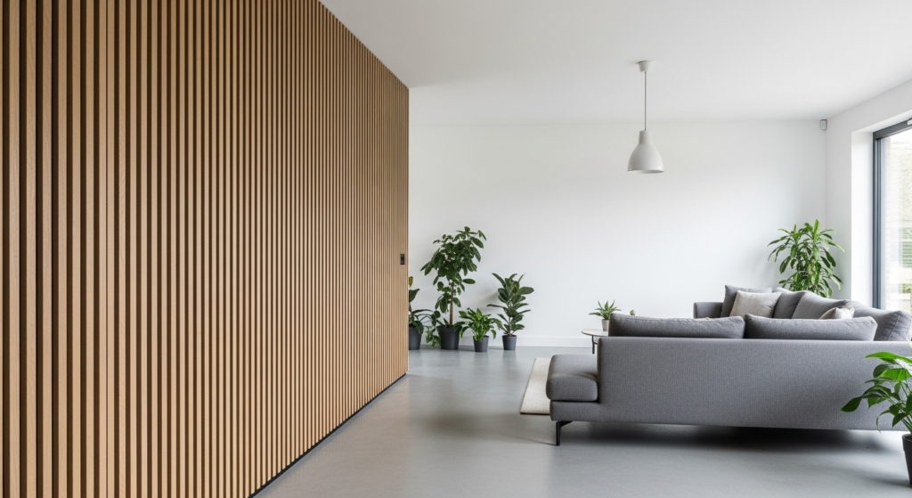 7. The Vertical Wood Slat Modern Touch