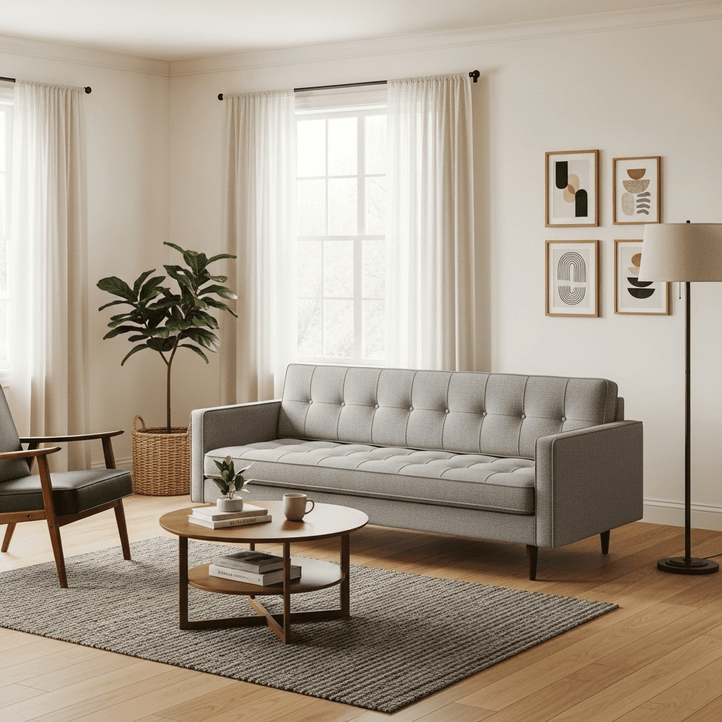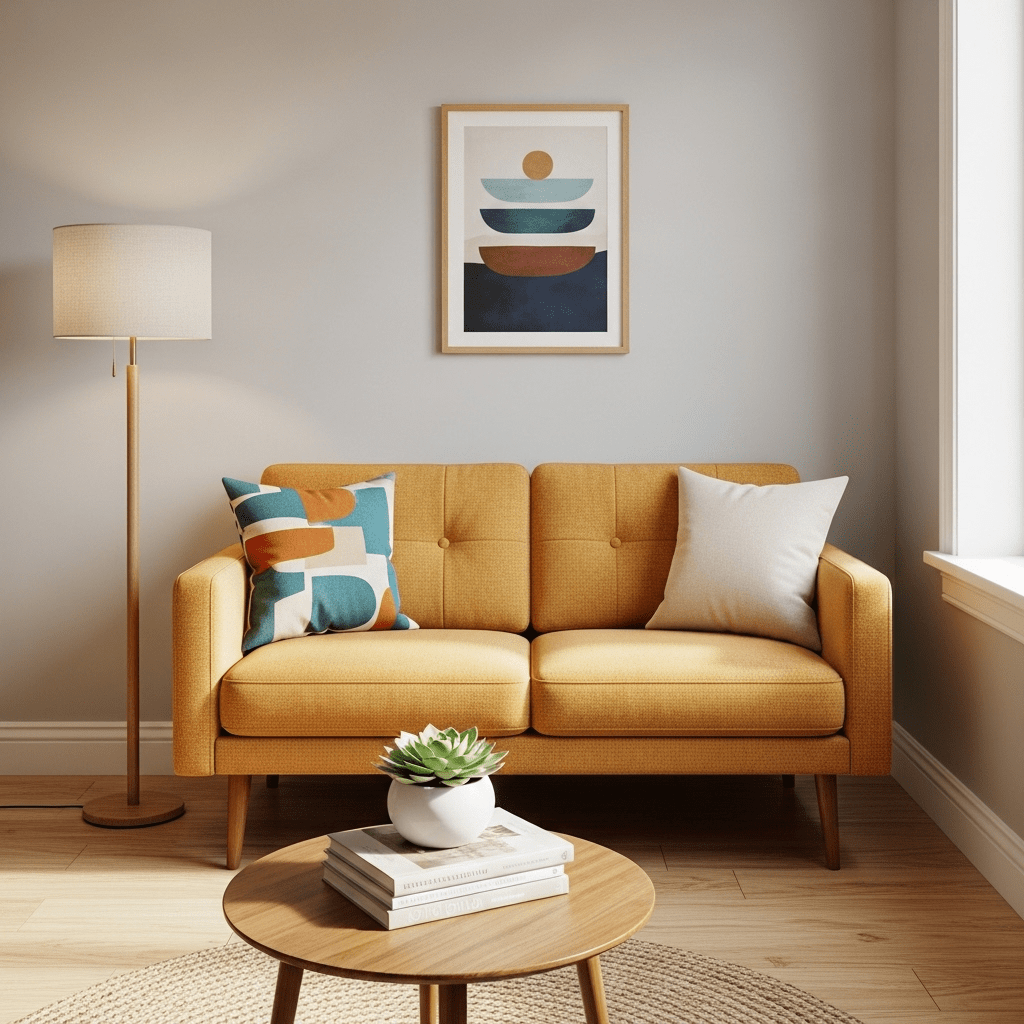 Sofa ideas for small living room layouts often start with mid-century modern designs featuring tall, angled legs. Elevating the frame off the ground allows the eye to travel underneath the furniture, which creates the illusion of more floor space.