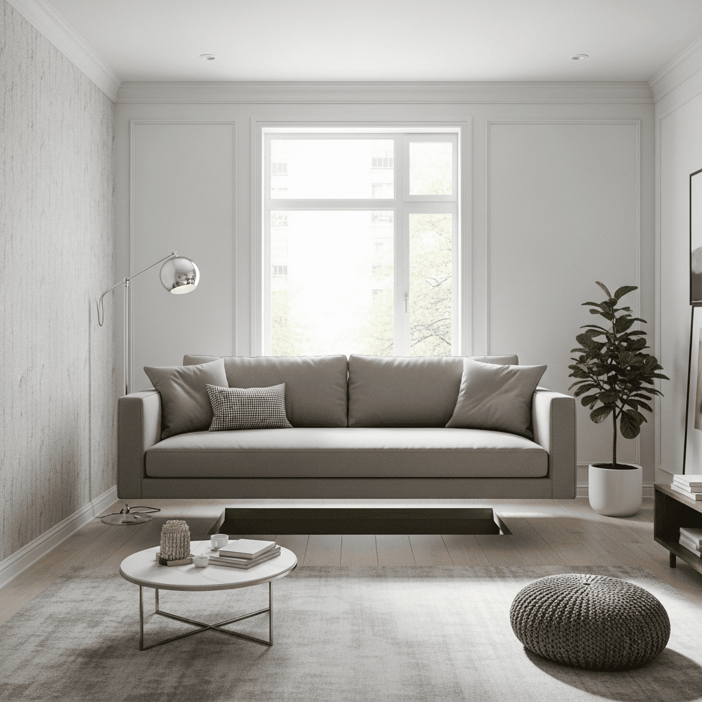 Sofa ideas for small living room light-play include sofas with a recessed or plinth base that creates a “floating” effect. This design minimizes the visual impact of the furniture’s foundation, making the seating area appear weightless.