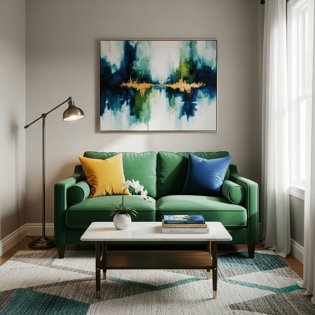 Sofa ideas for small living room focal points involve choosing a small sofa in a vibrant color or rich texture like velvet. In a small space, a single high-impact piece of furniture can define the entire room’s personality without the need for extra decor.