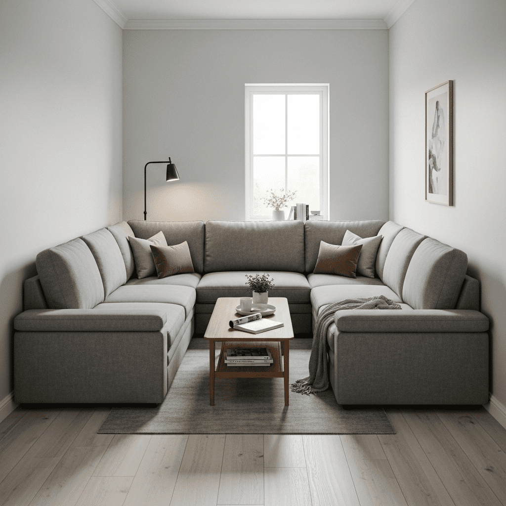 Position the longer section along one wall and the shorter section extending into the room. This creates a cozy conversation area that doesn’t block the entire narrow space. Keep the chaise or shorter section compact to maintain traffic flow.
