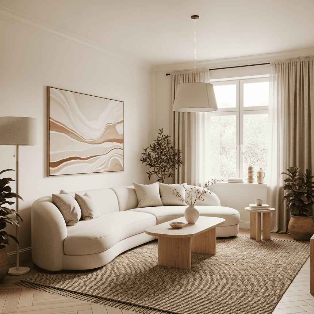 Curved sofas add organic shapes that contrast beautifully with rectangular rooms. The rounded silhouette creates visual interest while the unique shape naturally draws people together. Position it facing the best view or focal point in your room.