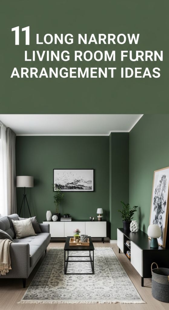 Most people’s instinct when furnishing a narrow room is to push everything against the walls to maximize floor space. Paradoxically, this often makes the room feel more cramped and tunnel-like. The floating furniture arrangement turns this conventional wisdom on its head by pulling key pieces away from the walls.