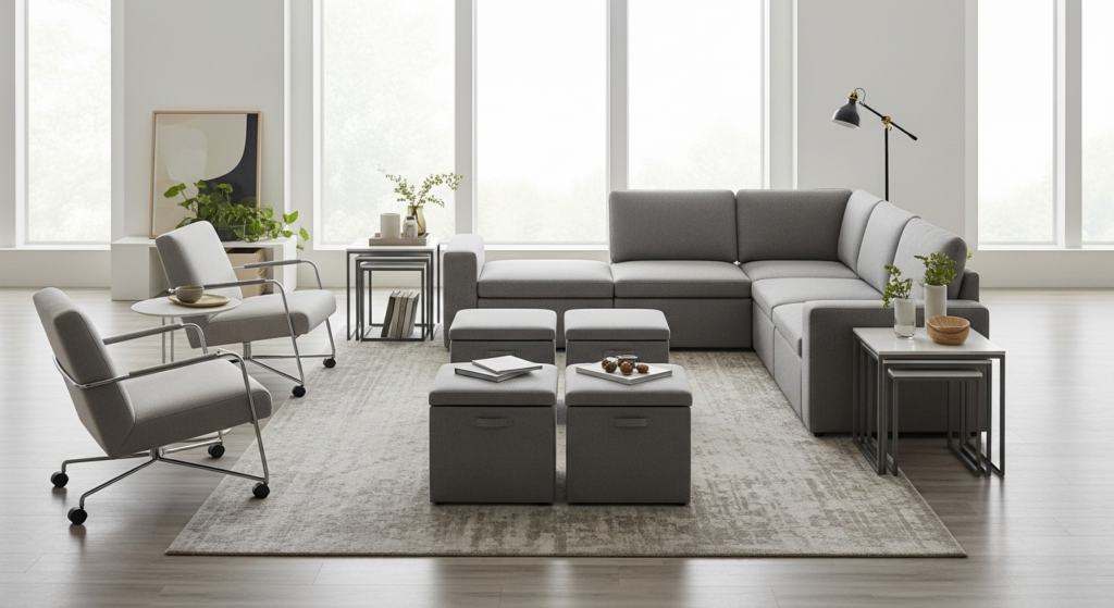 The beauty of this approach is that you’re not locked into a single arrangement. For movie night, configure the modular sections into a large sectional facing the TV. For a dinner party, separate the modules to create distinct seating areas that facilitate mingling. For everyday living, arrange pieces in whatever configuration best serves your routine.