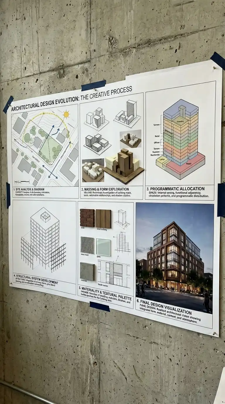 These 12 sheet ideas are not mutually exclusive. A hand-drawn sheet can include a before-and-after comparison. A diagram-only sheet can be a process sequence. A model-first sheet can include a large-scale section. The best sheets choose the format that fits the project, the audience, and the moment. They are not just boards — they are arguments. They are architecture. They are sheets.