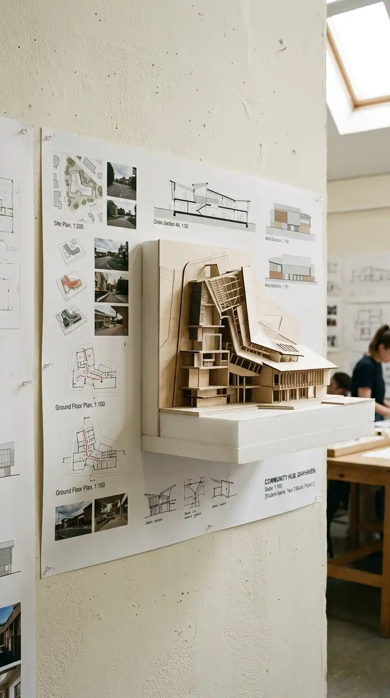 An architecture sheet is a single board or digital page that presents a project. It is not a portfolio. A portfolio is a collection of work. A sheet is an argument. It has a thesis, evidence, and a conclusion. The best sheets are not comprehensive — they are selective. They leave things out. They focus on what matters.