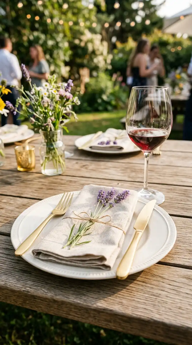 Paper plates kill the romance. Rent or thrift mismatched gold or silver flatware and glassware. Use real wine glasses (even cheap ones from a thrift store). The weight and sparkle of real tableware instantly elevate a backyard picnic to an elegant reception.