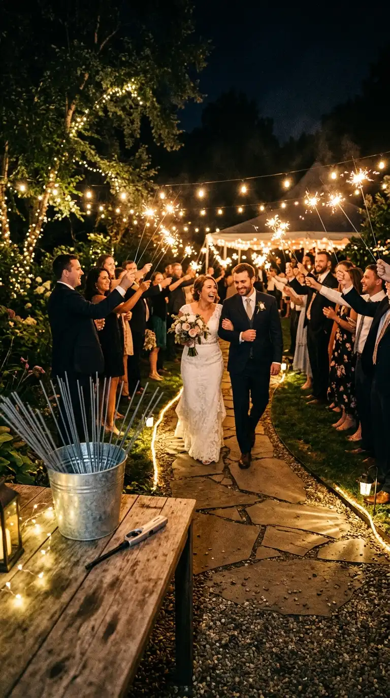 Even if the party ends at 9 PM, plan a sparkler moment. Set up a bucket of long sparklers (30+ inches) and a lighter near the exit path. As guests leave, they light sparklers and wave them while the couple walks through. The photos are unforgettable. Have a bucket of sand to dispose of used sparklers.
