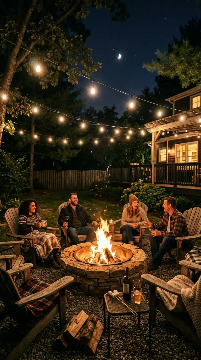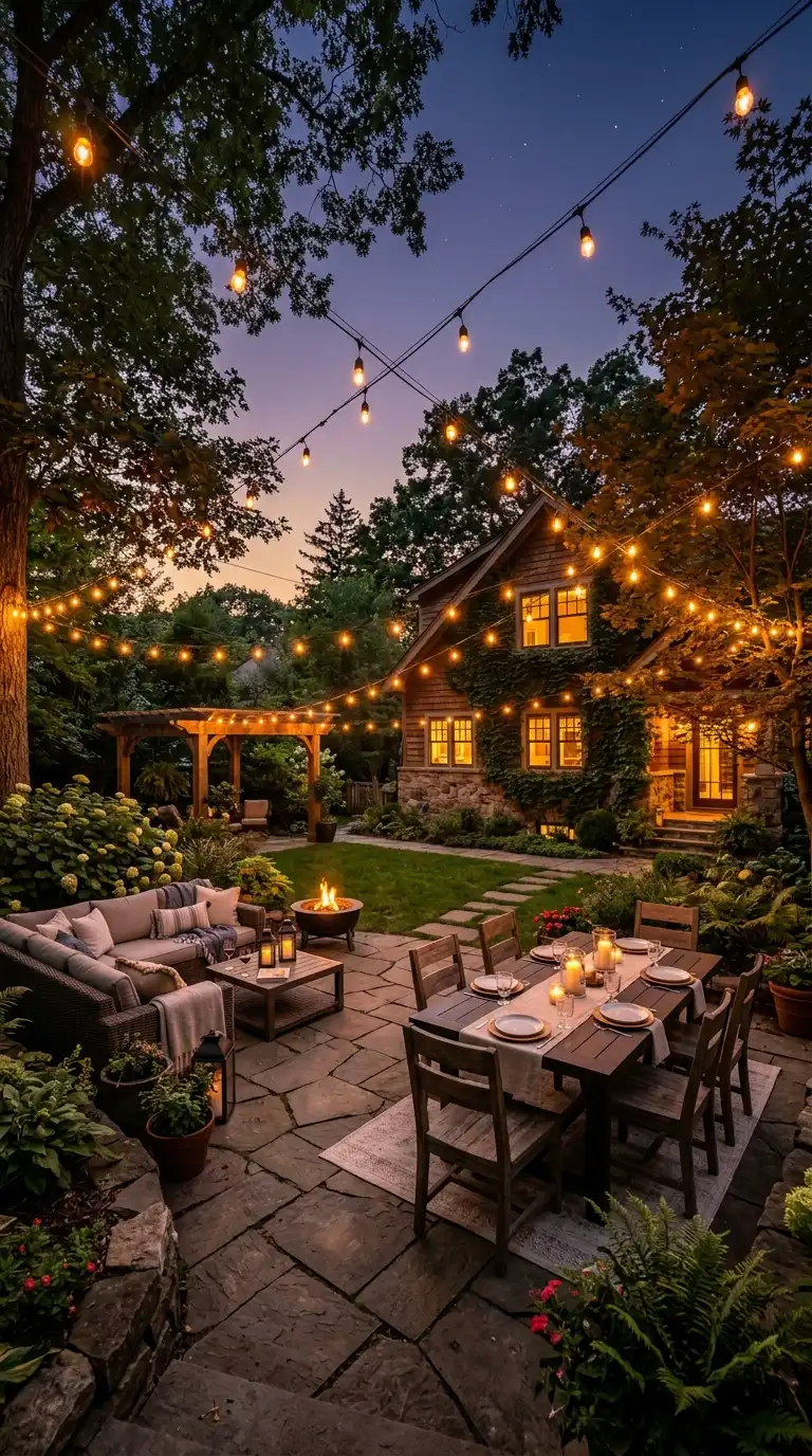 A fire pit or outdoor fireplace provides both warmth and ambient light. The flickering flames create a natural, mesmerizing glow that draws people together. Position comfortable seating around the fire feature, and use the fire as the centerpiece of your evening gatherings. For added ambiance, surround the fire pit with string lights or lanterns.