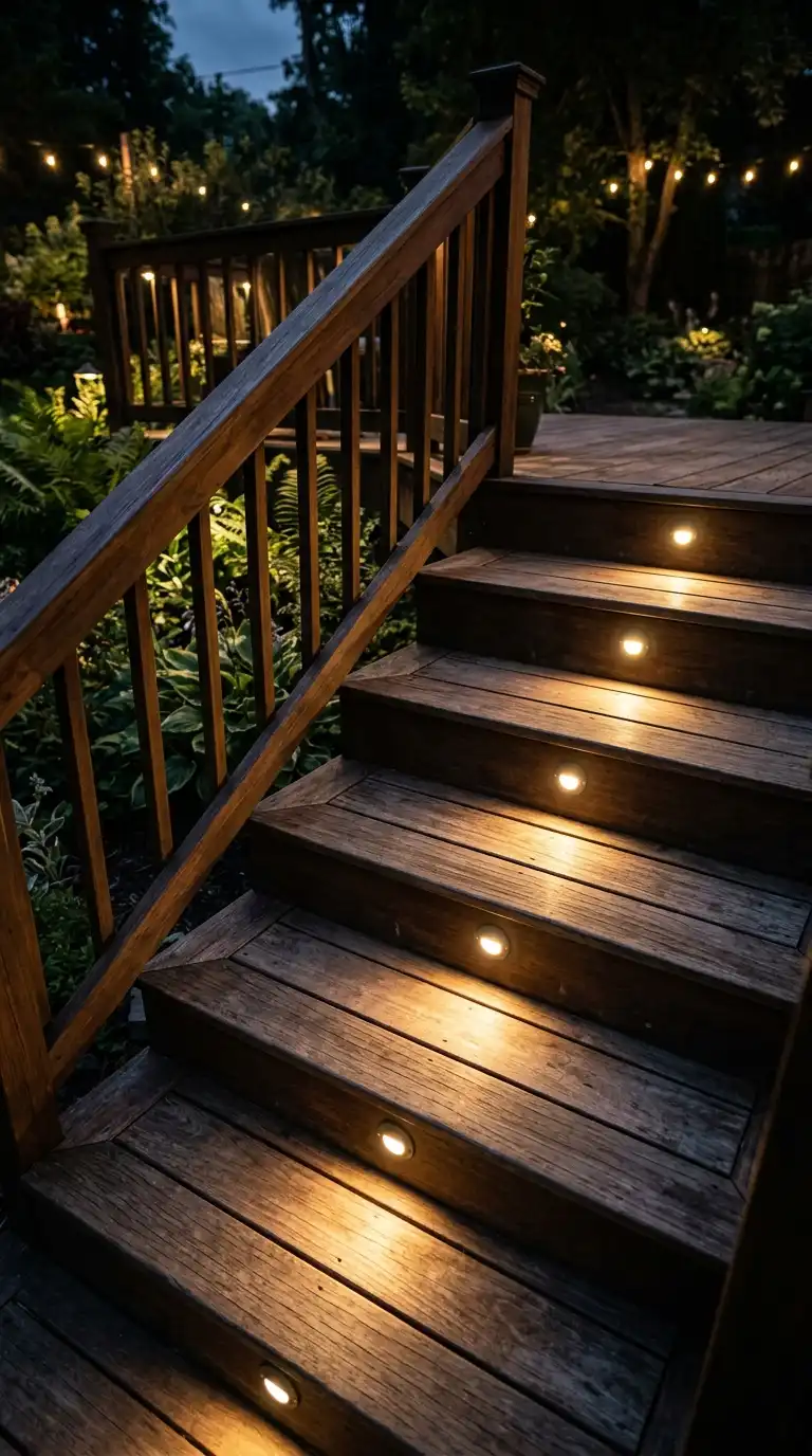 Step lighting improves safety and adds a polished look to decks, patios, and staircases. Install small LED lights on risers or along the edges of steps. Recessed lights are discreet and modern, while surface-mounted fixtures offer a traditional look. Step lighting prevents tripping hazards and adds a subtle glow that defines the architecture of your outdoor space.