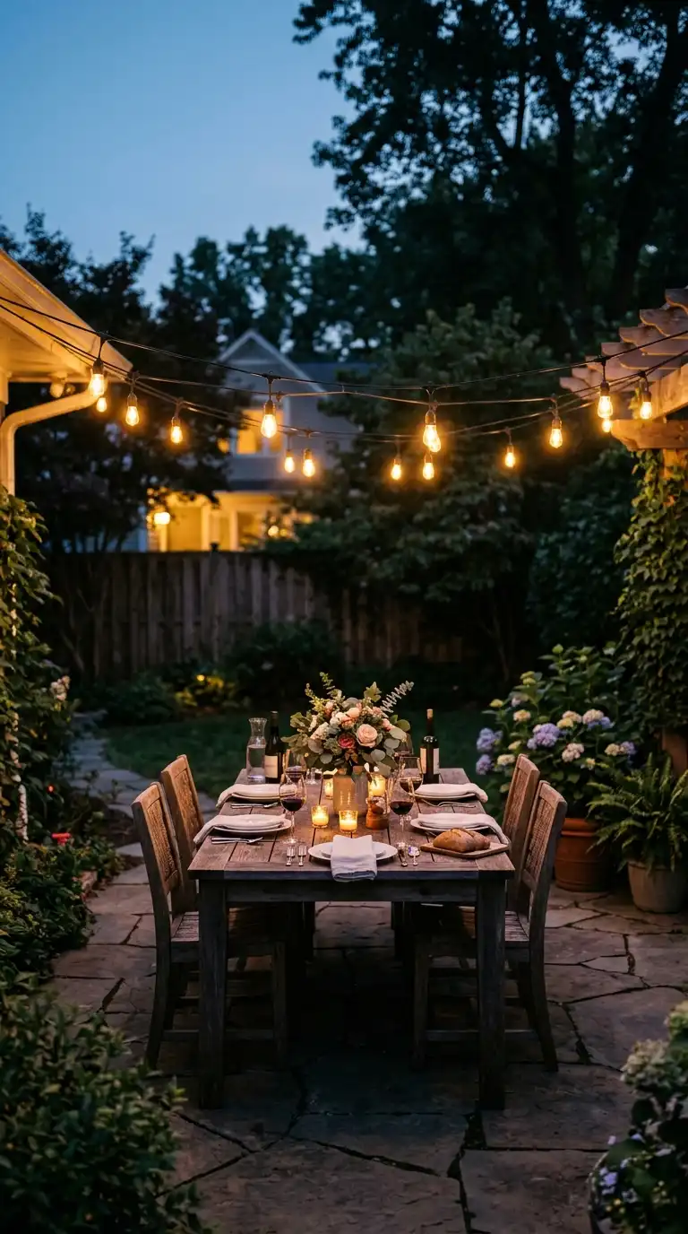 String lights are one of the most popular and effective ways to create a warm, inviting atmosphere. Crisscross them overhead between trees, across a patio, or over a dining area to create a magical canopy. Choose warm-toned bulbs (2700K) for a soft, flattering glow. For added charm, mix in larger globe bulbs or Edison bulbs. String lights work with any theme—rustic, boho, elegant, or modern—and instantly elevate the space.
