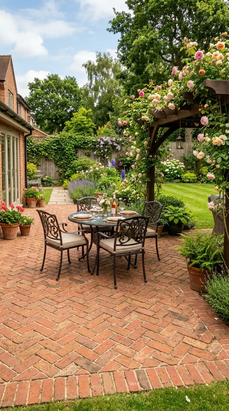 1. Classic Brick Herringbone Patio