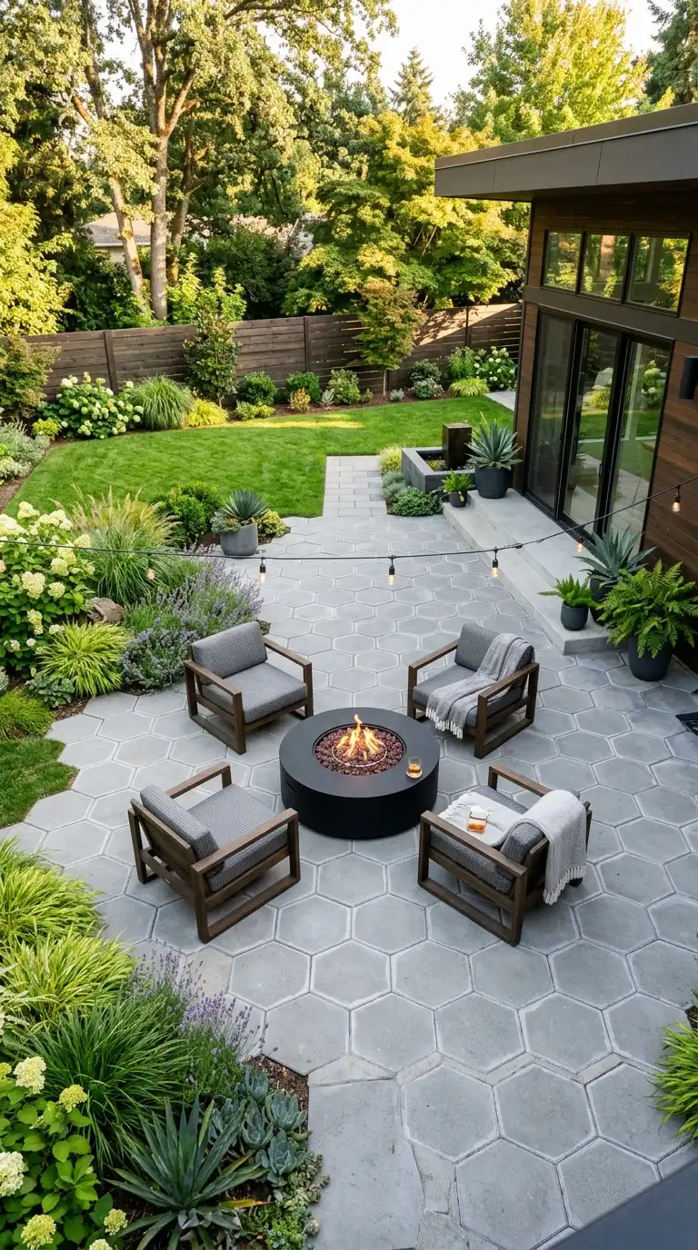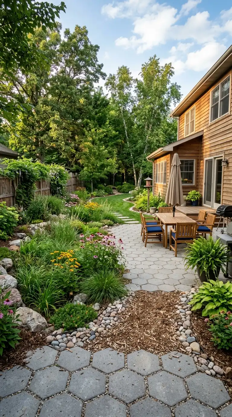 Hexagonal pavers add geometric interest and a unique, modern touch to any backyard. Use them for a patio, walkway, or as an accent within a larger paver design. Hexagonal pavers are available in concrete, clay, or stone. Arrange them in a honeycomb pattern for a striking, contemporary look. Pair them with gravel or ground covers in the spaces between for added texture.