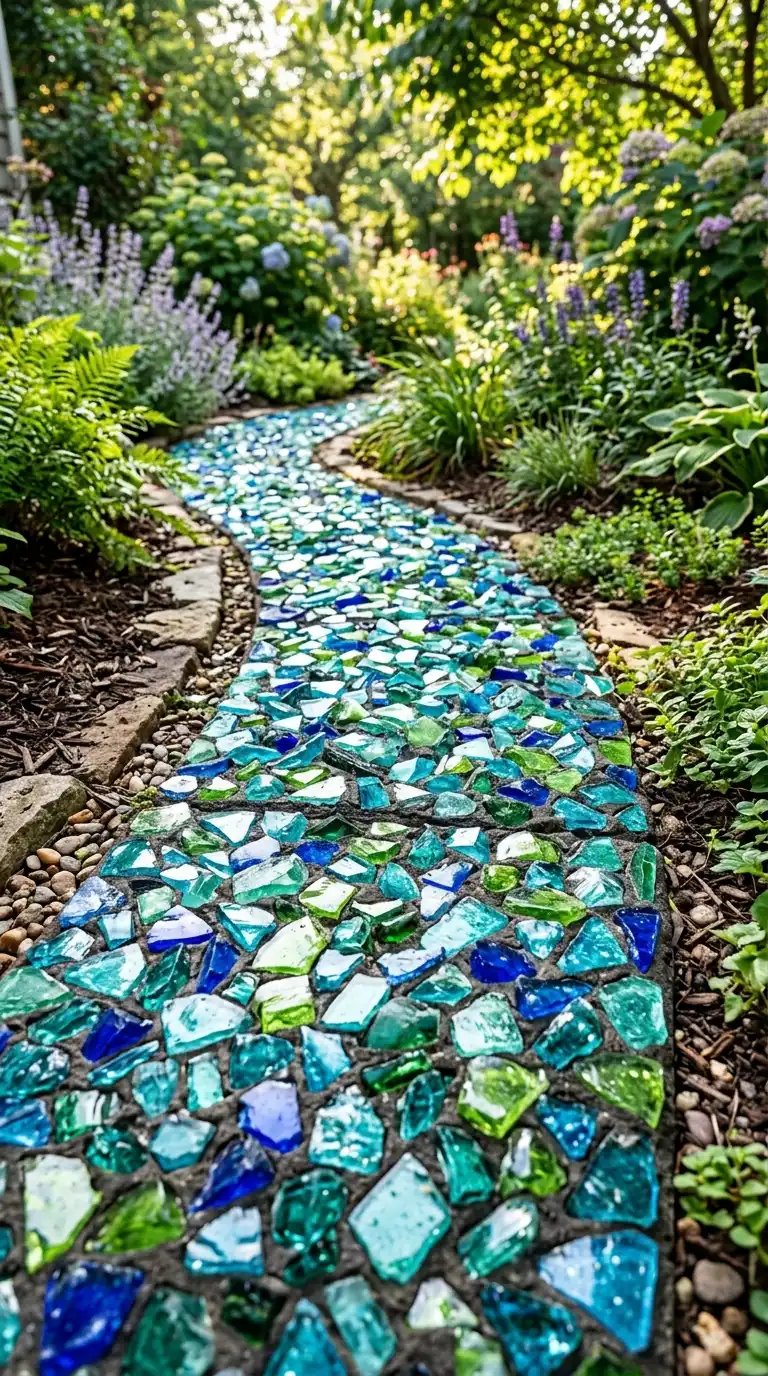 Recycled glass pavers are an eco-friendly, visually striking option for patios and walkways. The pavers are made from crushed glass mixed with resin, creating a translucent, sparkling surface. They are available in various colors—blue, green, amber, and clear. Recycled glass pavers are durable, slip-resistant, and add a unique, artistic element to your backyard.