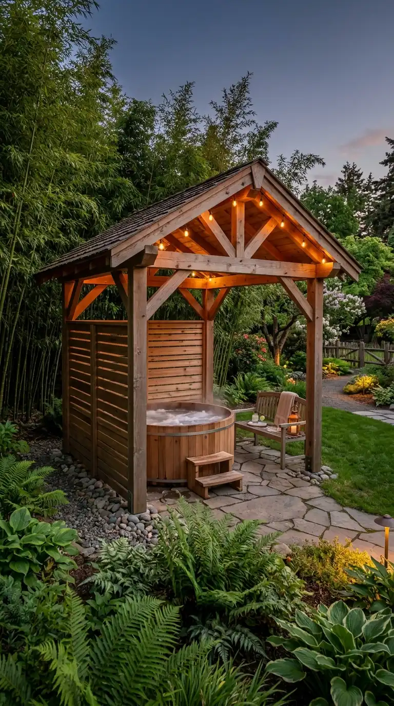 Create a private spa retreat by enclosing a hot tub within a pavilion. The structure provides shelter from sun and rain, while the open sides allow for ventilation. Add privacy screens, ambient lighting, and a small seating area for relaxation. A pavilion-enclosed hot tub feels like a luxurious spa experience in your own backyard.