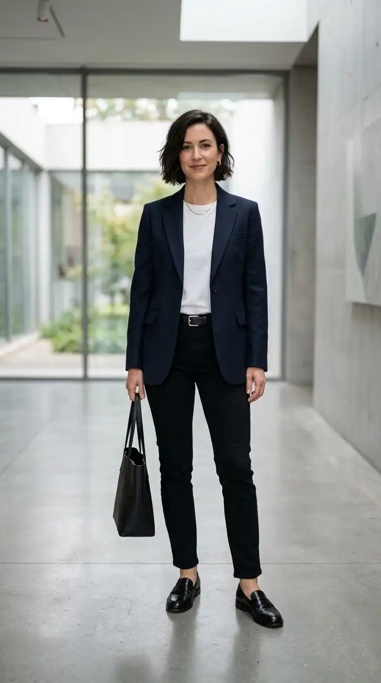 A tailored blazer instantly elevates a simple t-shirt and jeans combination. Choose a blazer in a neutral color—navy, charcoal, or camel—and pair with a white or black tee and slim-fit jeans. This outfit transitions seamlessly from casual to professional, making it a workhorse of the minimalist wardrobe.