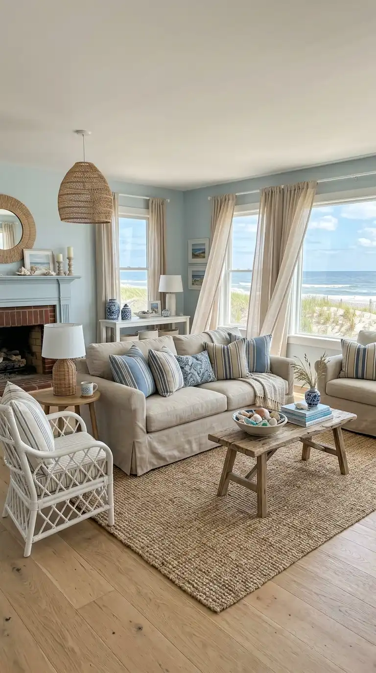 10. Blue and Beige Coastal Living Room