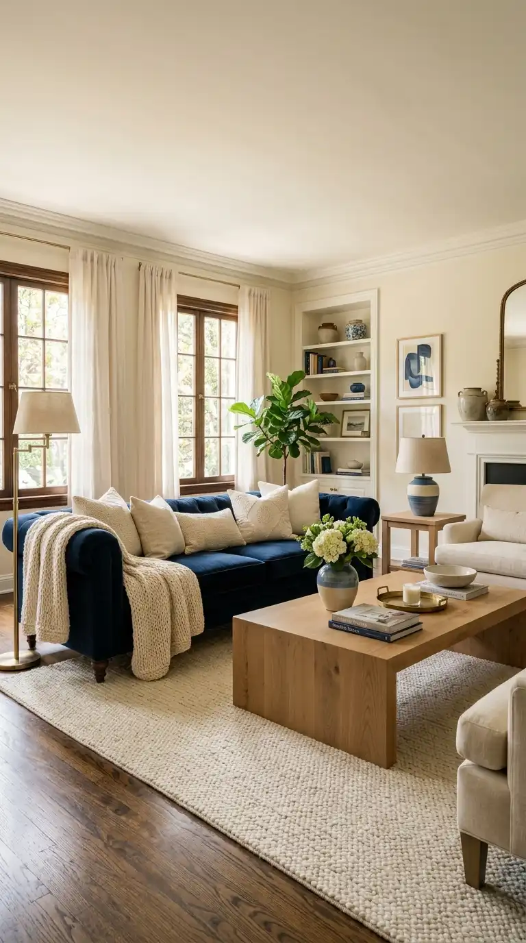 From navy and cream to powder and ivory, blue and cream living rooms offer endless possibilities for creating spaces that feel timeless, elegant, and deeply serene. This classic combination adapts to every design style—coastal, traditional, modern, farmhouse, eclectic—and pairs beautifully with virtually every material and texture.