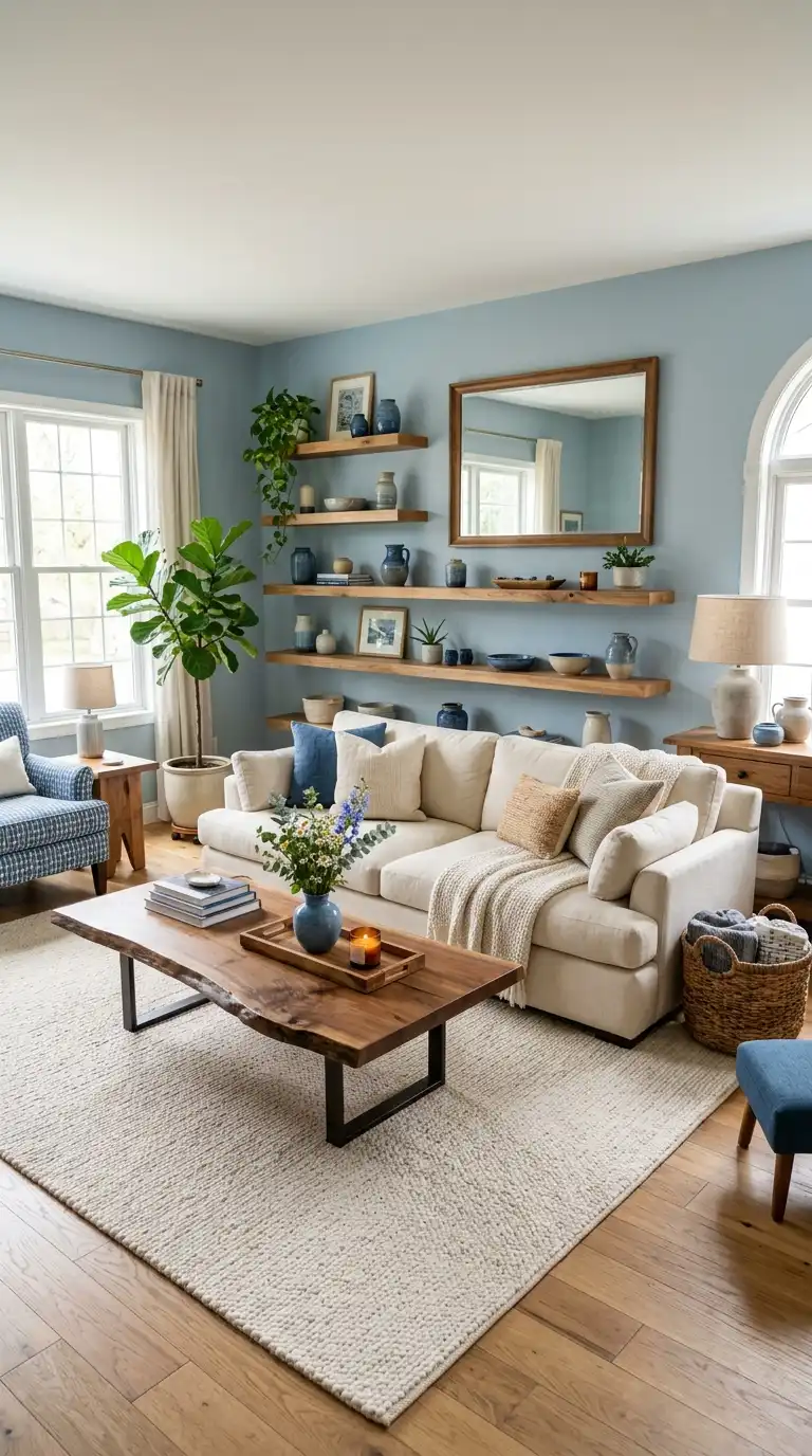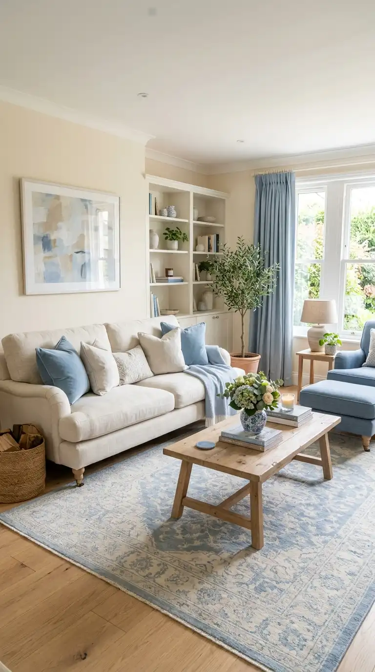 For those designing a blue and cream living room, consider how this timeless palette can anchor your space while you implement smart storage solutions elsewhere. Drawing inspiration from bathroom storage ideas for small spaces can help you maintain a clutter-free environment that lets your beautiful color scheme shine.