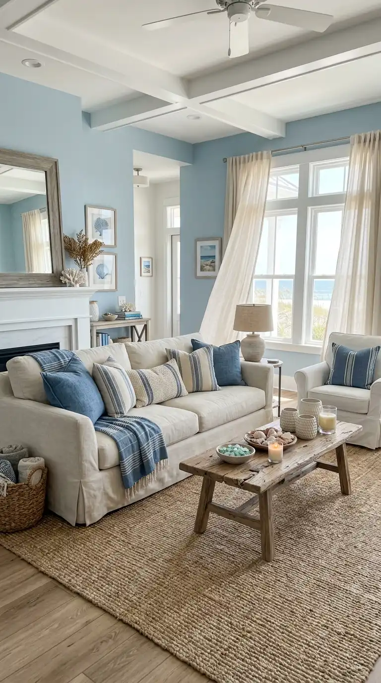 9. Blue and Cream Coastal Living Room