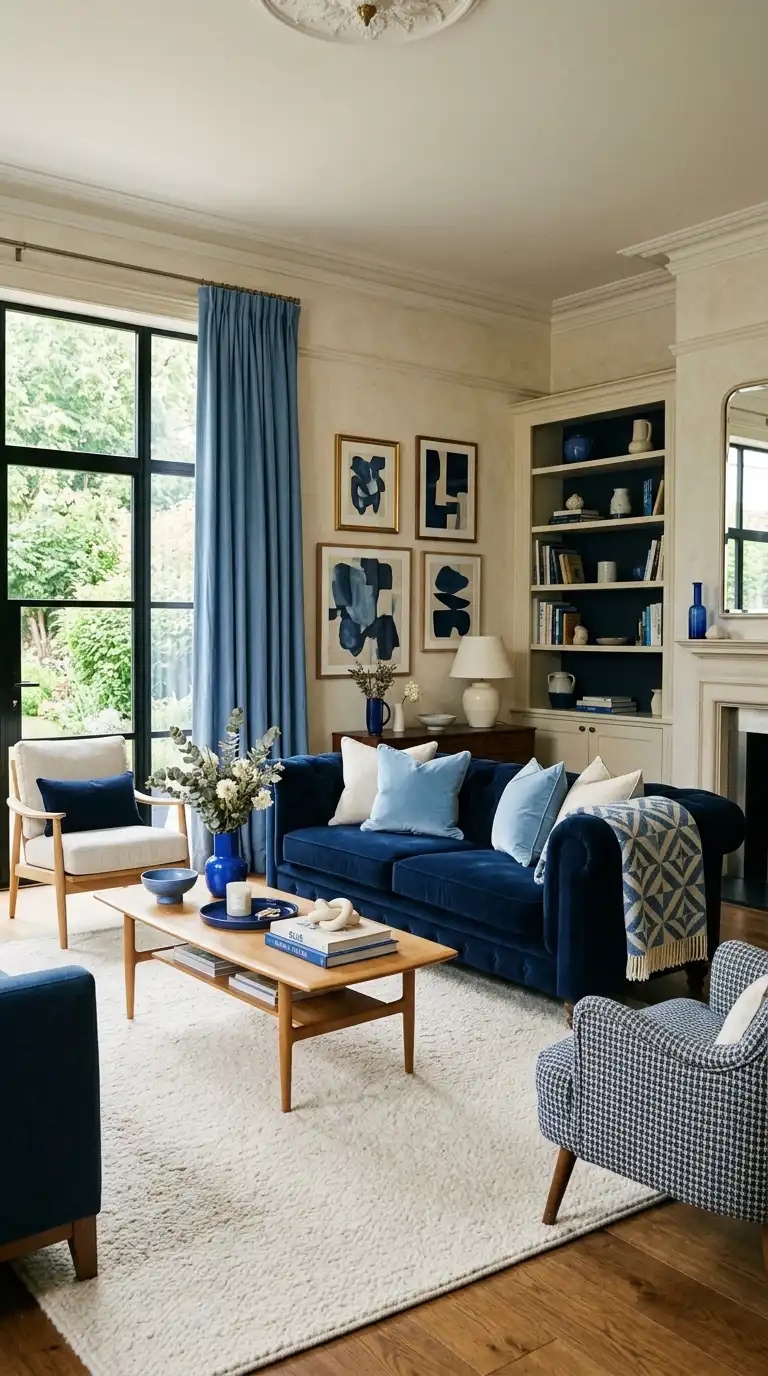 Blue and cream living rooms offer endless possibilities for creating spaces that feel calm, elegant, and deeply personal. Whether you prefer dramatic navy with rich cream, soft powder with delicate ivory, or layered textures in both colors, this timeless combination adapts to every style.