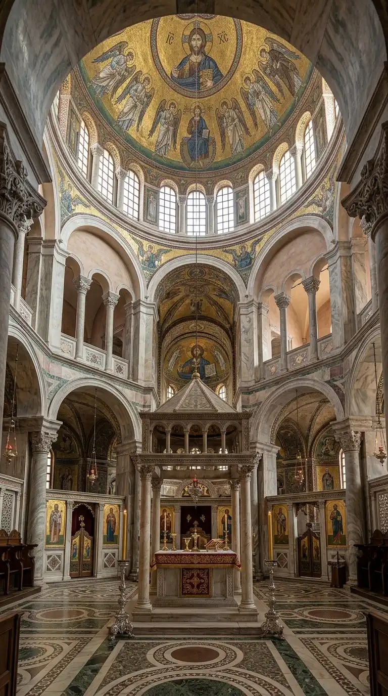 Byzantine architecture is the architecture of the Eastern Roman Empire. It is the architecture of Constantinople (Istanbul), of Ravenna, of Venice, of Russia. Byzantine buildings are domed, golden, and mystical. The dome is the vault of heaven. The mosaics are the stars. Light enters from above, illuminating the gold. Byzantine architecture is celestial, golden, and mysterious.