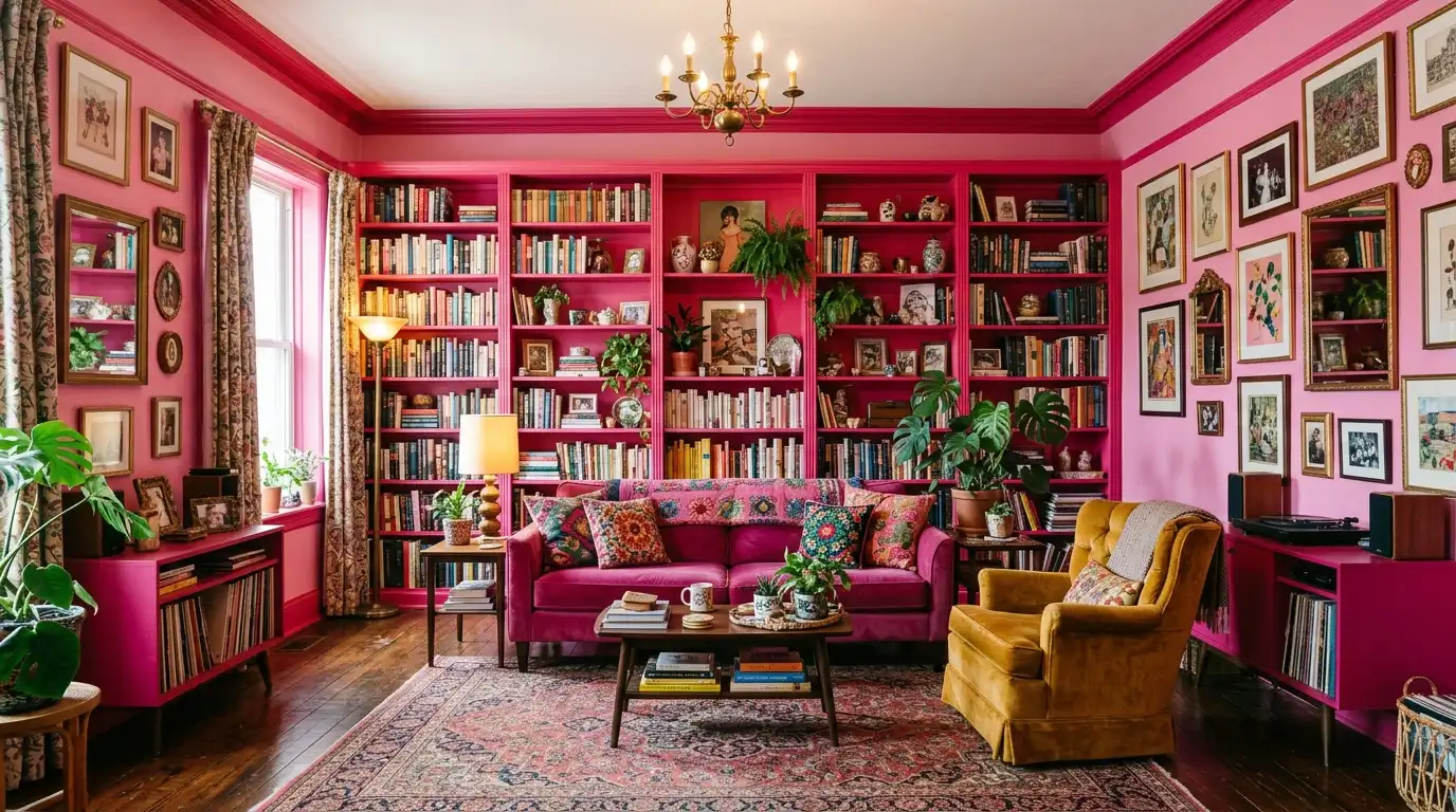 Drench every surface—from the molding to the radiator—in varying shades of magenta and blush. This creates a seamless, cocoon-like sanctuary where the intensity of a single color family provides the maximalist impact.