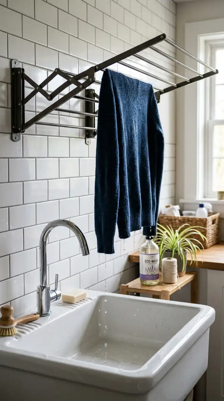 Install a wall-mounted drying rack directly above your utility sink. This allows wet delicates to drip directly into the sink, preventing water from pooling on your floor. This is especially useful for hand-washed items that need to be laid flat or hung to dry.