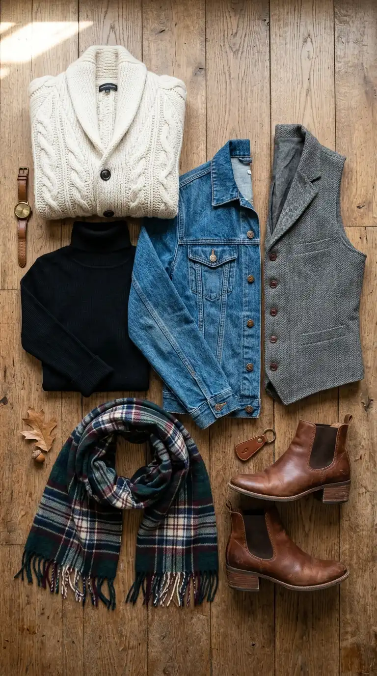 Fall is all about layering, and the cozy layers capsule focuses on pieces that can be stacked and combined for warmth and style. Key pieces include a chunky knit cardigan, a lightweight turtleneck, a denim jacket, a wool vest, and a plaid scarf. This capsule celebrates texture and comfort, with pieces that can be mixed and matched to create countless layered looks.