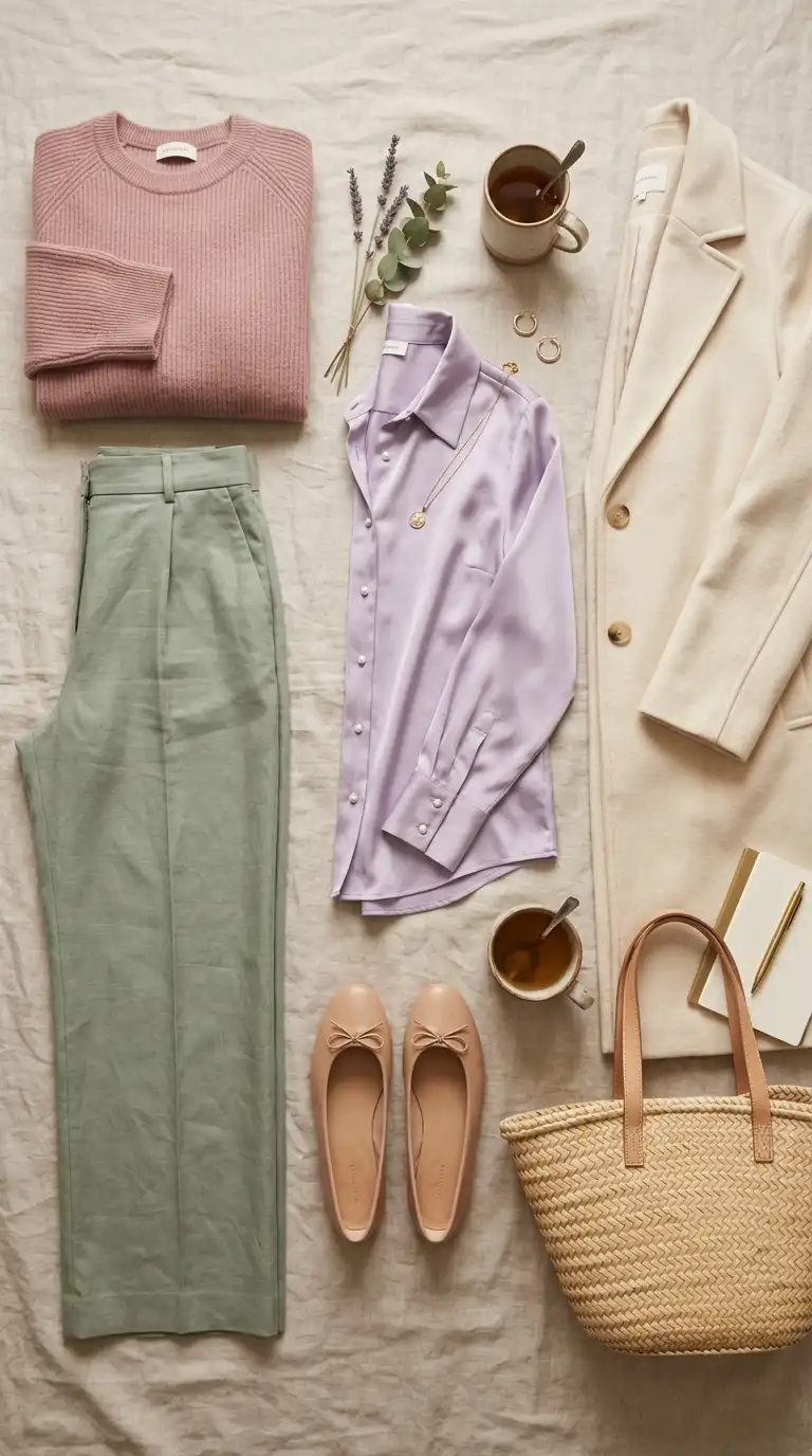 While pastels are often associated with spring, muted autumn pastels—like dusty rose, sage green, and lavender—add a soft, romantic touch to fall wardrobes. Key pieces include a dusty rose sweater, sage green trousers, a lavender silk blouse, and a cream coat. This capsule is ideal for those who prefer a softer color palette while still embracing the season.