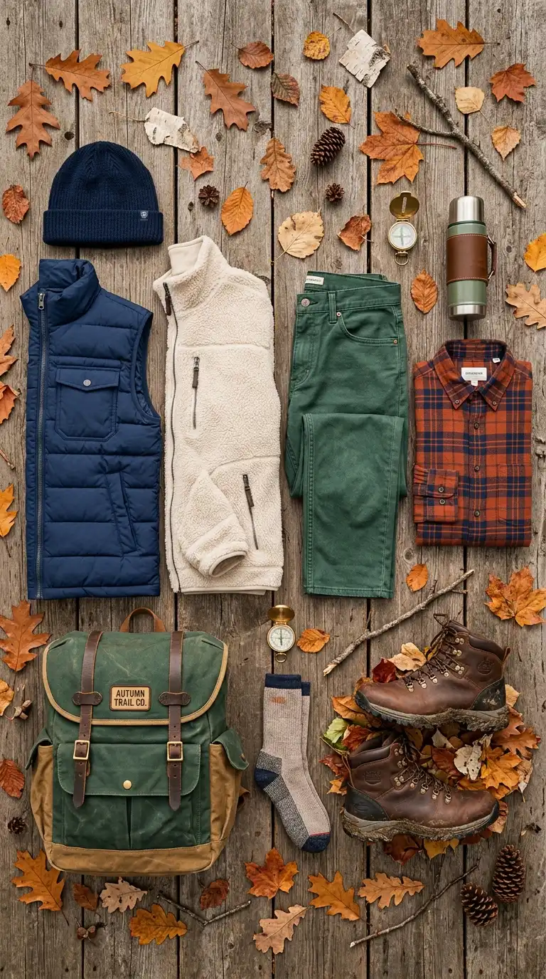For those who spend fall weekends hiking, exploring, and enjoying the outdoors, an adventure capsule combines style with functionality. Key pieces include a puffer vest, a fleece jacket, durable denim, a flannel shirt, and waterproof boots. The palette includes forest green, navy, rust, and cream. This capsule is designed for comfort, warmth, and practicality without sacrificing style.
