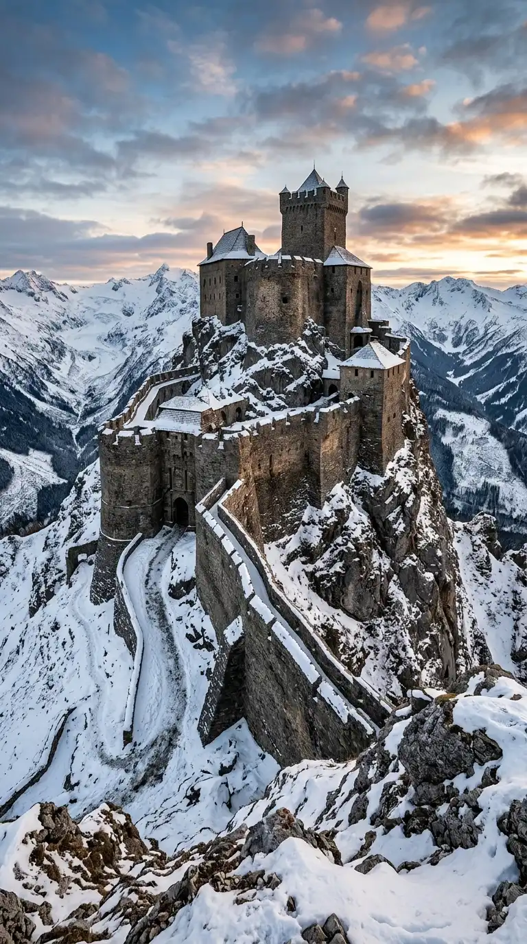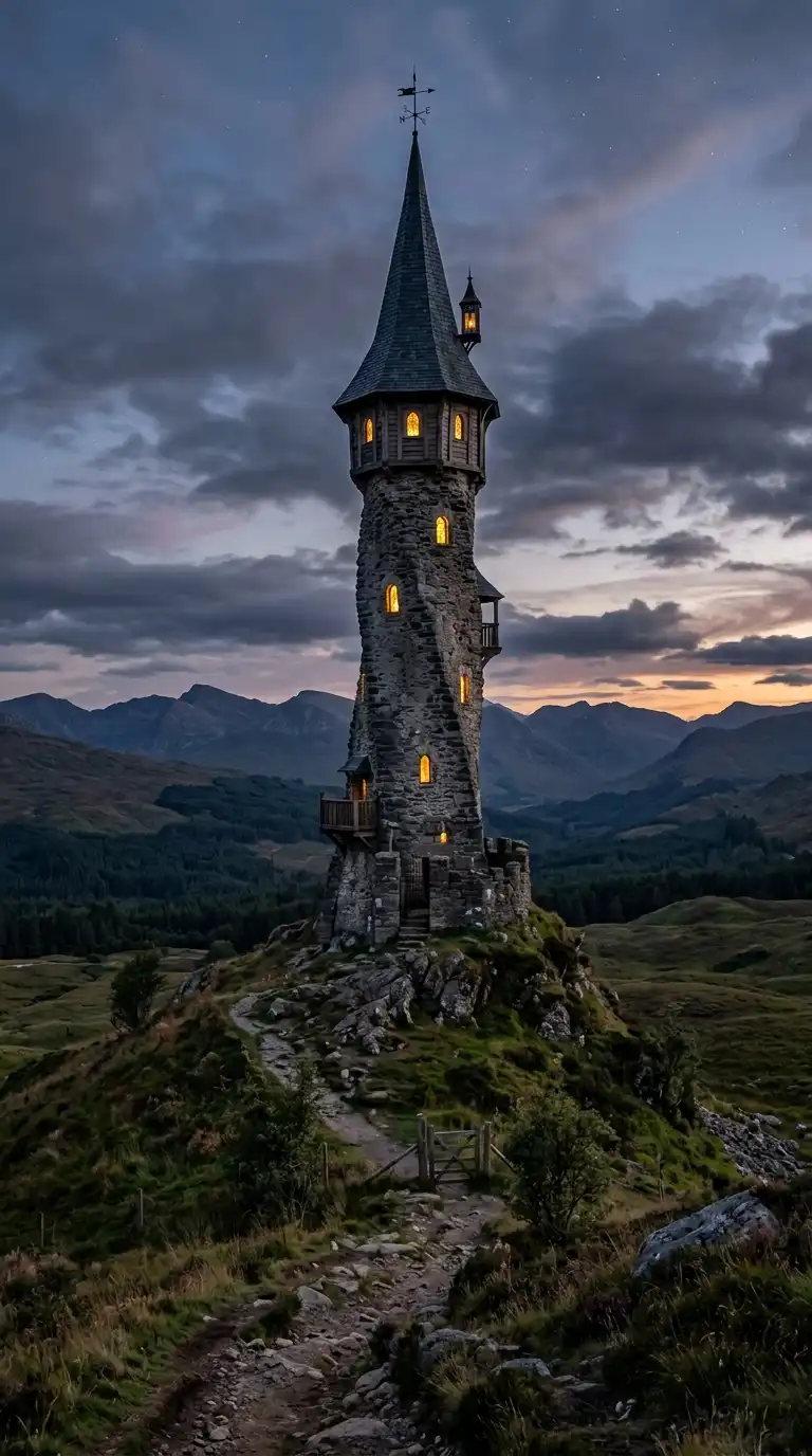 This design is ideal for fantasy fortresses and remote strongholds. The emotional effect is vertical, defensive, and dramatic.