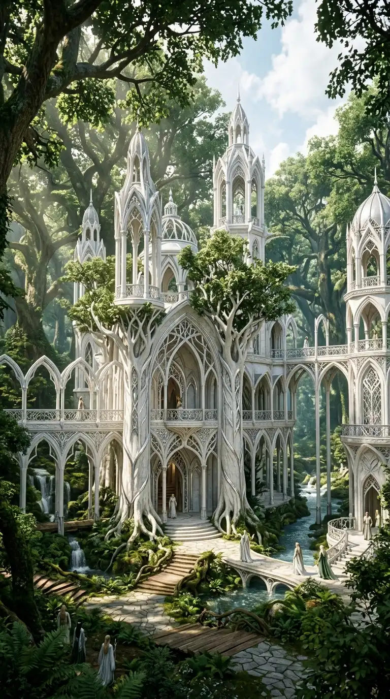 This design is ideal for elf villages and forest sanctuaries. The emotional effect is organic, hidden, and magical.