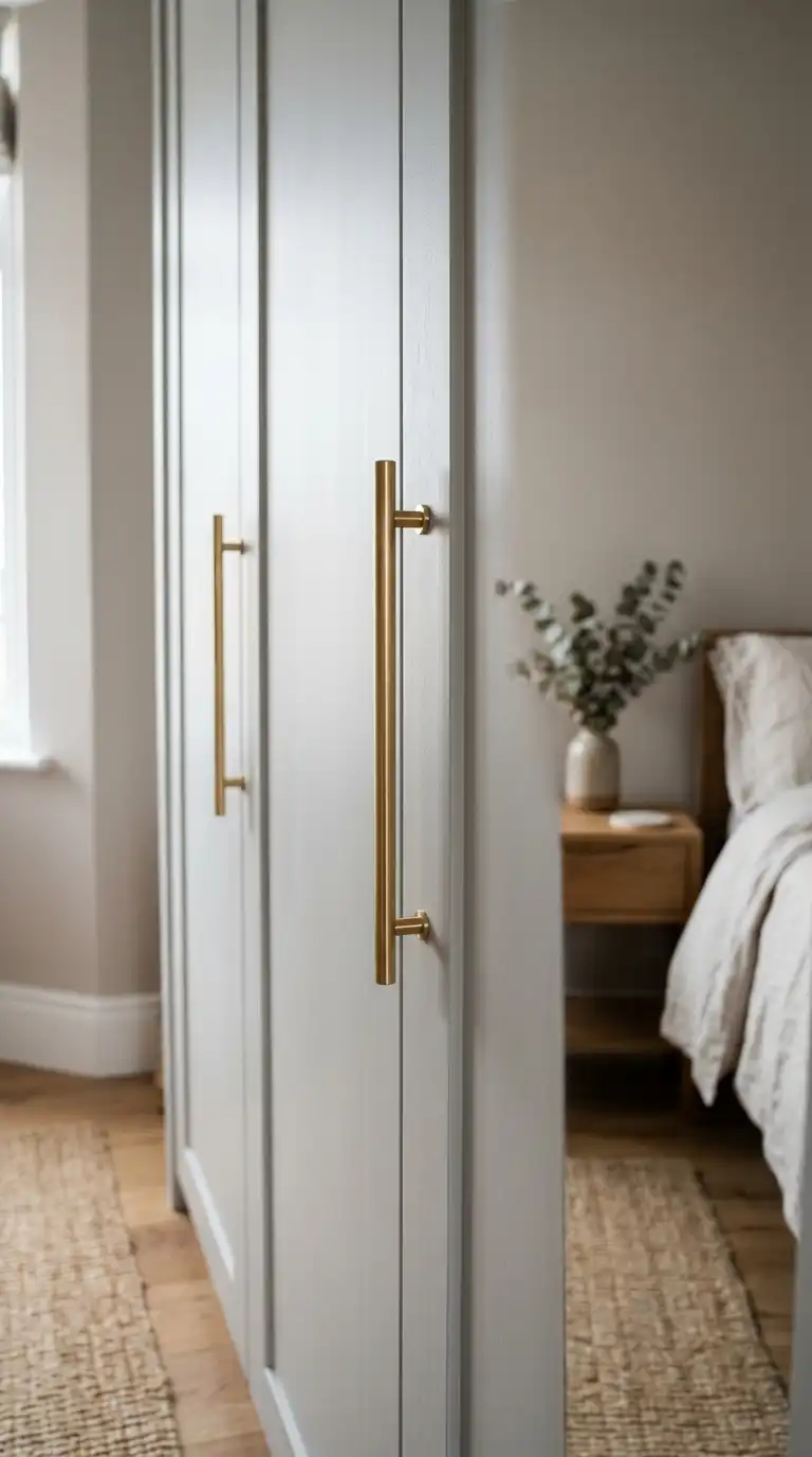 Elevate a grey wardrobe with brass handles and accents. The warm metallic contrasts beautifully with the cool grey, adding a touch of elegance and sophistication. Choose slim bar pulls or classic cup pulls.