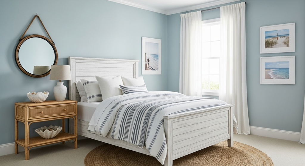 Create a serene, beach-inspired retreat with coastal decorating elements.