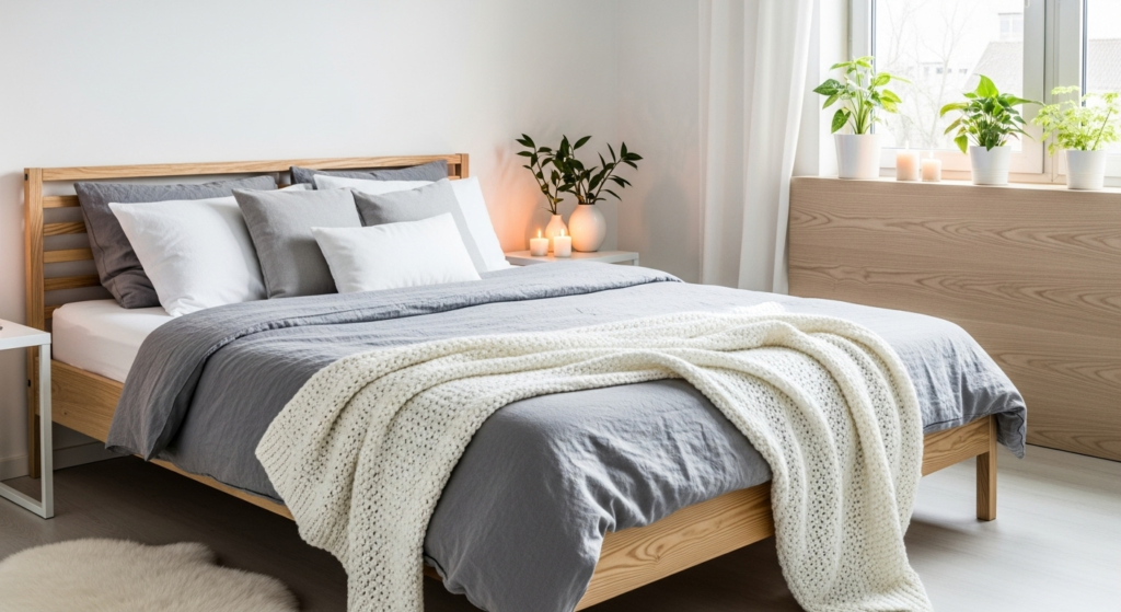 Create a cozy, light-filled sanctuary with Nordic-inspired comfort.