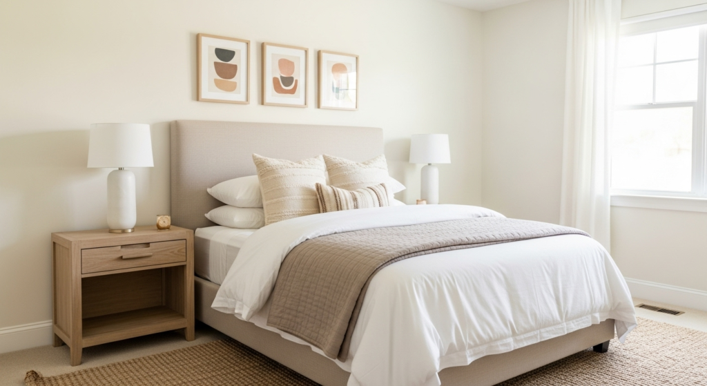 Don’t feel pressured to decorate expensively. Some of the most charming guest bedrooms feature thrifted furniture, DIY artwork, and budget-friendly accessories. What matters most is that the space feels clean, cohesive, comfortable, and intentional.