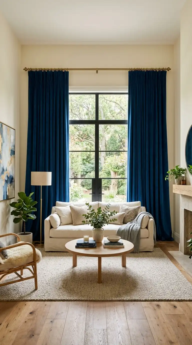 5. Hague Blue Curtains for Dramatic Framing