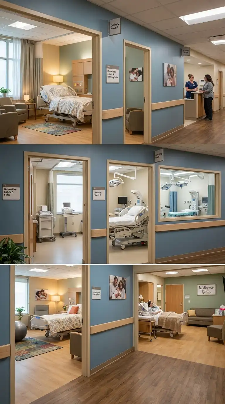 - Delivery rooms must be adjacent to operating rooms for emergencies.