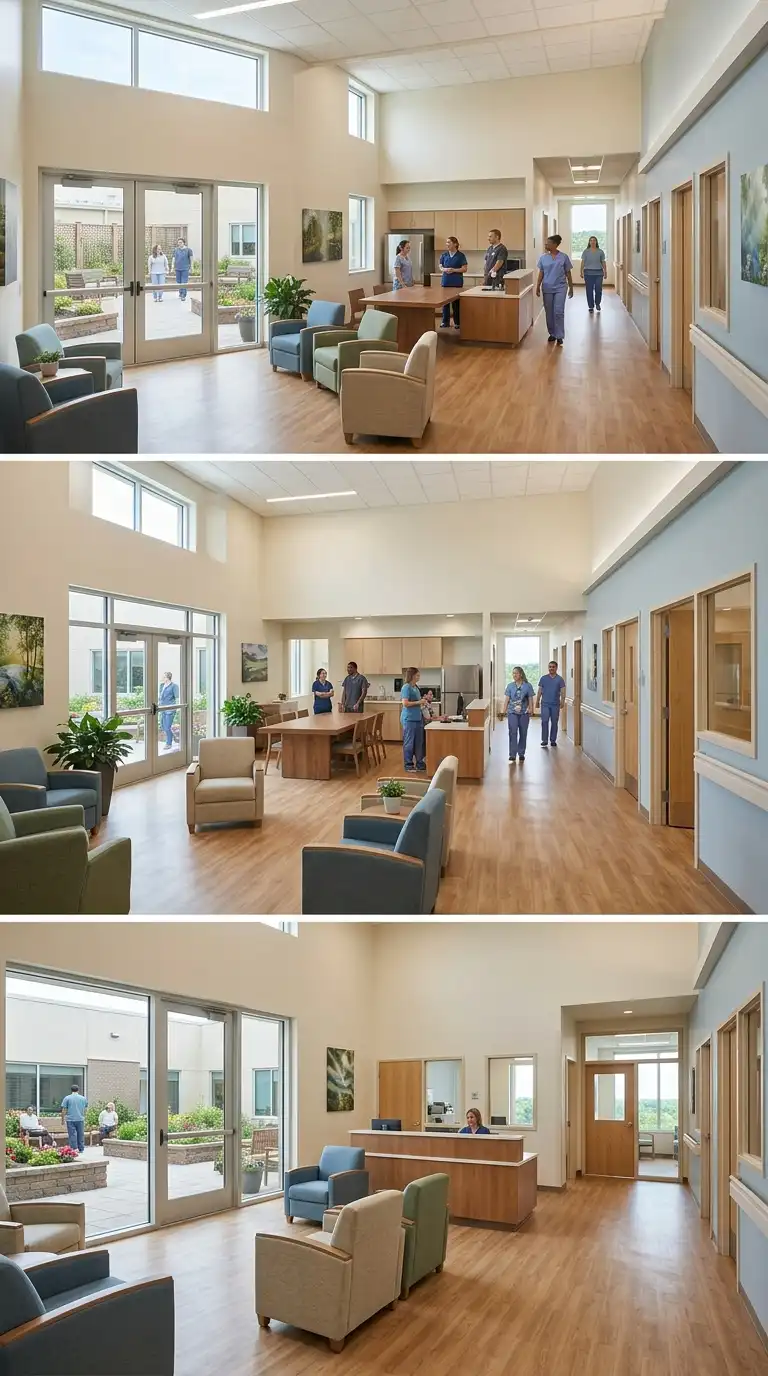 The mental health unit is designed for safety and calm. The unit has private rooms, common areas, and outdoor space. The unit is secure but not prison-like. The mental health unit is safe, calm, and therapeutic.