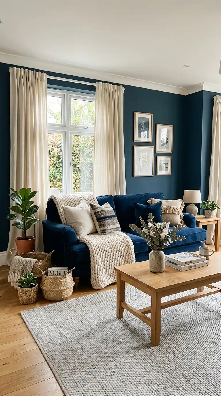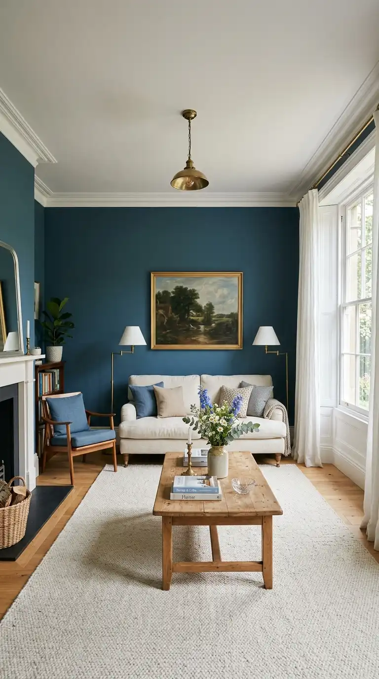 For a truly immersive, intimate space, paint the walls, trim, and even the ceiling in Inchyra Blue . This color-drenching technique creates a seamless, enveloping environment that feels cozy and dramatic. As one homeowner described it, painting her bedroom entirely in Inchyra Blue gave the room a “cozy and ancient” feel—a quality that translates beautifully to living rooms designed for relaxation and quiet evenings .