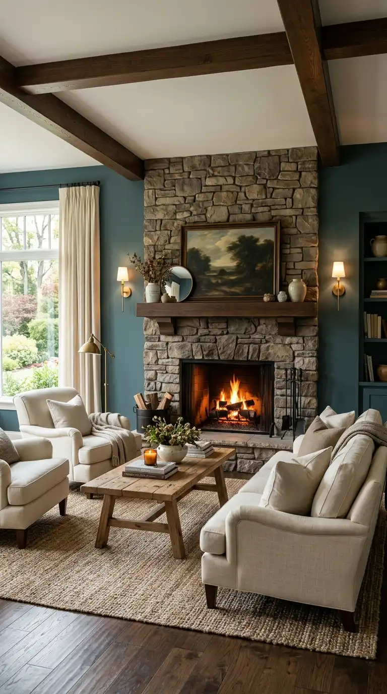 11. Inchyra Blue with a Stone Fireplace