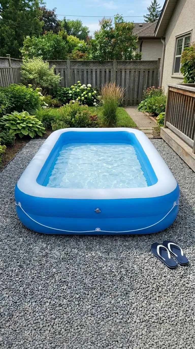 Grass under an inflatable pool dies quickly. Prevent the mud pit by laying down a gravel pad first. Excavate a shallow rectangle slightly larger than your pool. Fill with compacted pea gravel or decomposed granite. Set the pool on top. Water drains through, and you never stand in mud.