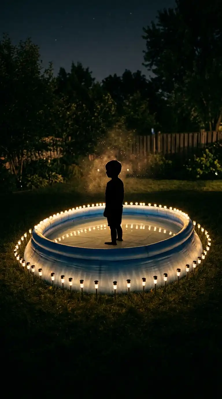 Line the outside edge of your inflatable pool with solar-powered stake lights or floating LED pool lights. During the day, they charge. At night, they create a glowing ring around the water. You can swim after dark without stumbling over the inflatable edge.