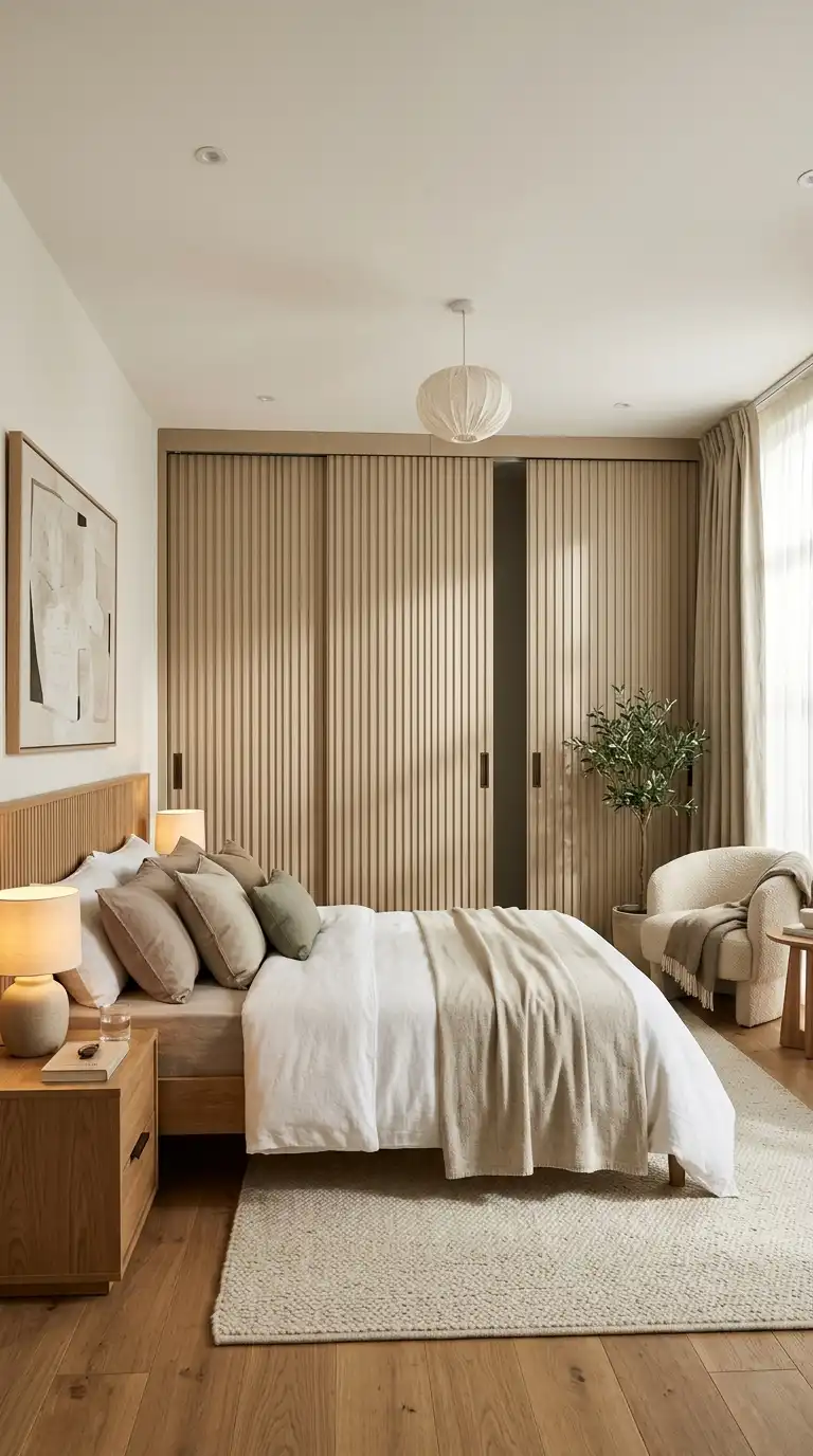 Fluted or ribbed panels are one of the most sought-after trends in contemporary wardrobe design. The vertical grooves add texture, depth, and architectural interest, transforming a simple sliding wardrobe into a striking design feature. Ribbed panels catch light and create subtle shadow play, adding visual richness without overwhelming the space. This design works beautifully in modern, transitional, and eclectic bedrooms. Pair with matte finishes in neutral tones or bold hues like deep navy or forest green for maximum impact.