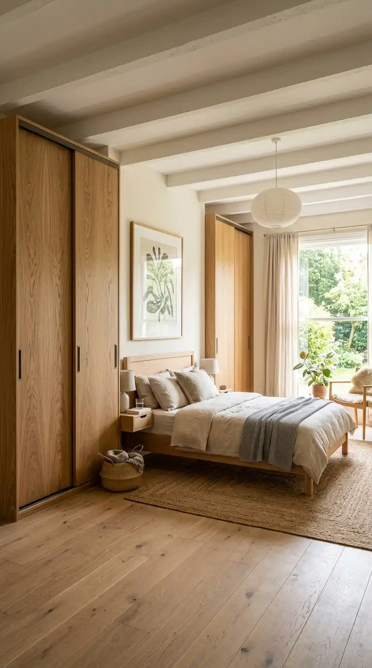 Natural wood veneer sliding wardrobes bring warmth, texture, and organic beauty to a bedroom. Choose from a range of wood species—oak, walnut, teak, ash—to suit your style. Modern veneer finishes often feature continuous grain patterns across multiple door panels, creating a seamless, flowing effect that mimics custom millwork. Wood veneer works beautifully in Scandinavian, mid-century modern, and farmhouse interiors, adding a sense of calm and connection to nature.