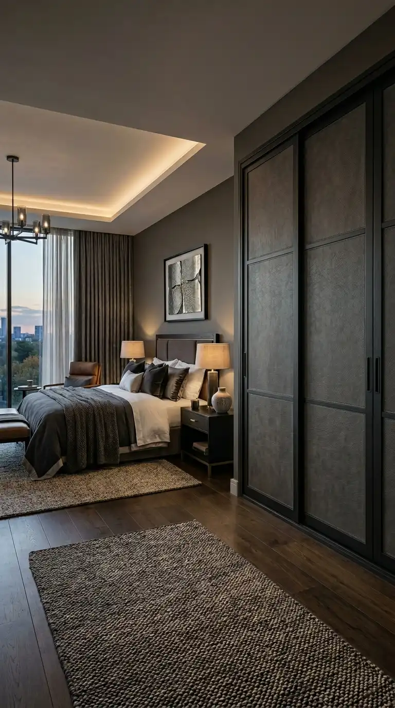 5. Sliding Wardrobe with Leather or Upholstered Panels