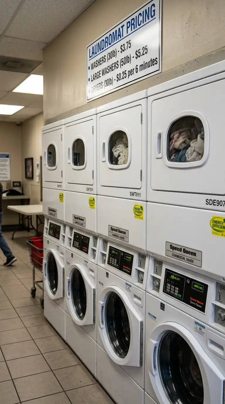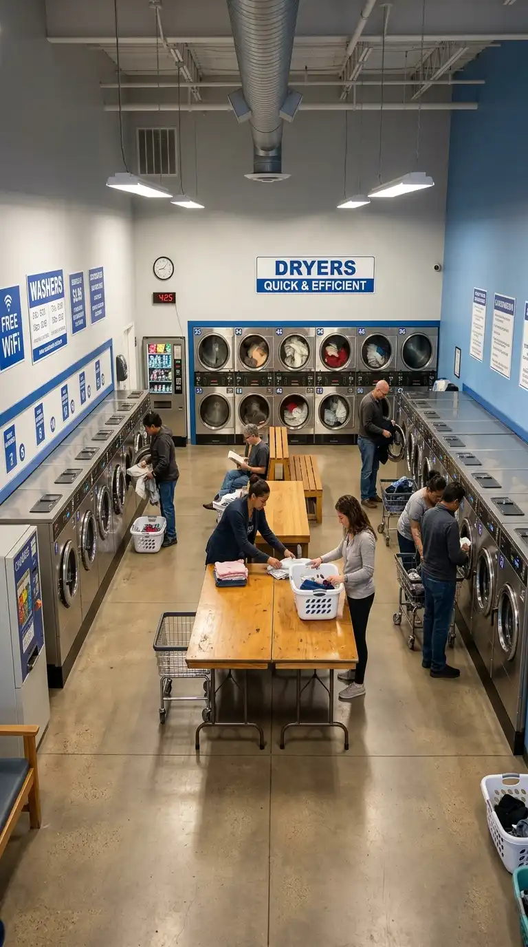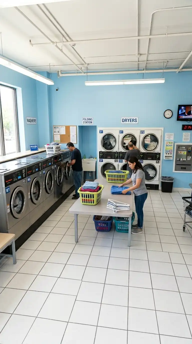 For very small spaces, use stacked commercial washer-dryer units. These have a dryer mounted above a front-loading washer. They take up half the floor space of side-by-side units, allowing you to fit more machines in a small shop. This is ideal for urban locations with high rent.
