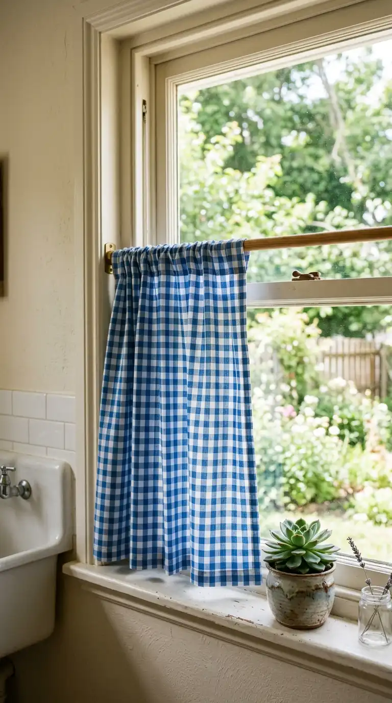 Soft window treatments make a utilitarian space feel more like a room. Hang a cafe curtain on a small window for privacy while still letting in light. Use a valance above the window for a touch of fabric without blocking the view. Choose a pattern that complements your color scheme—stripes, gingham, or floral prints work well in laundry rooms.